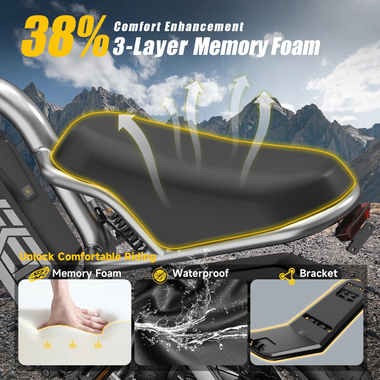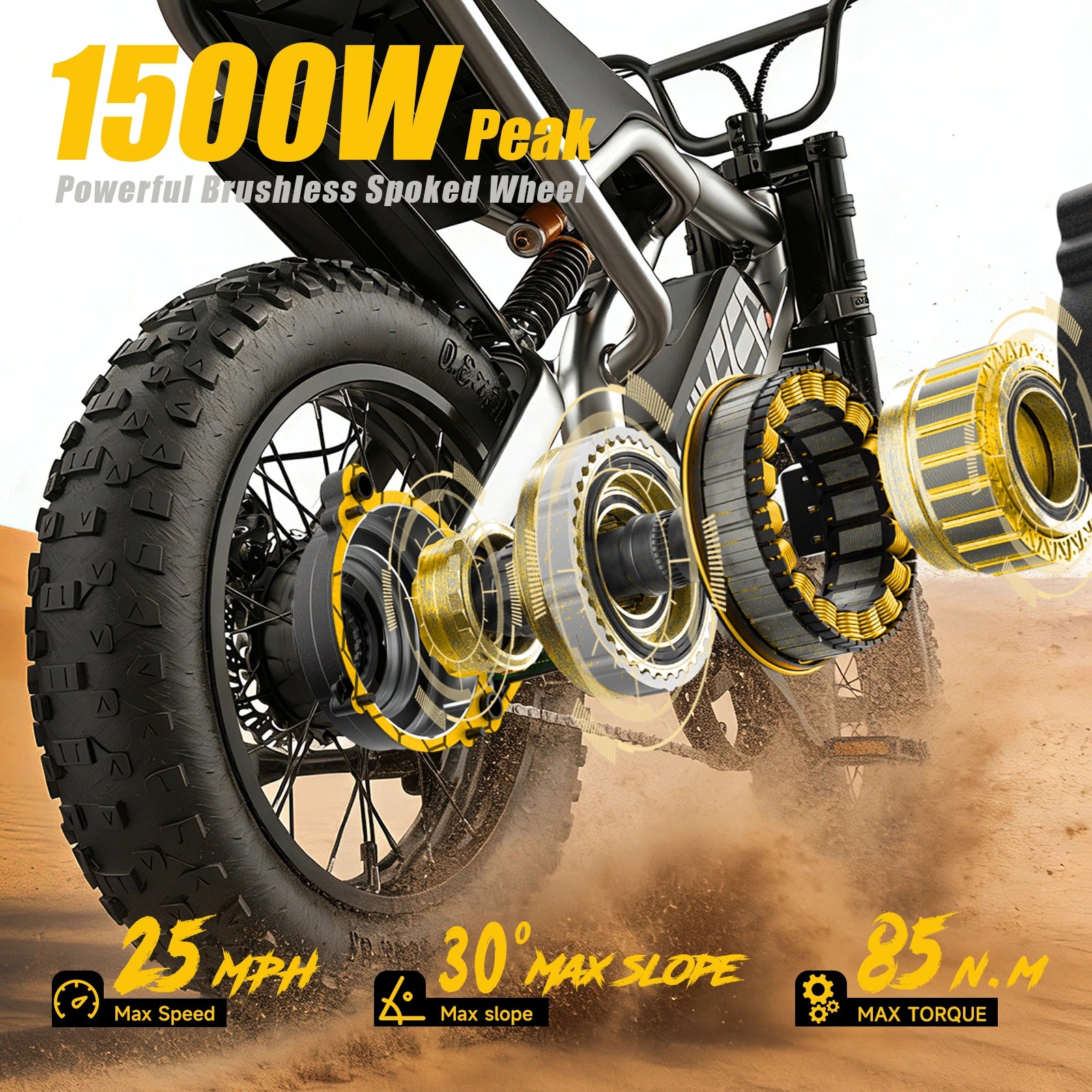 Go Anywhere: 3000W peak motor. 28+ MPH top speed.748.8Wh battery.”