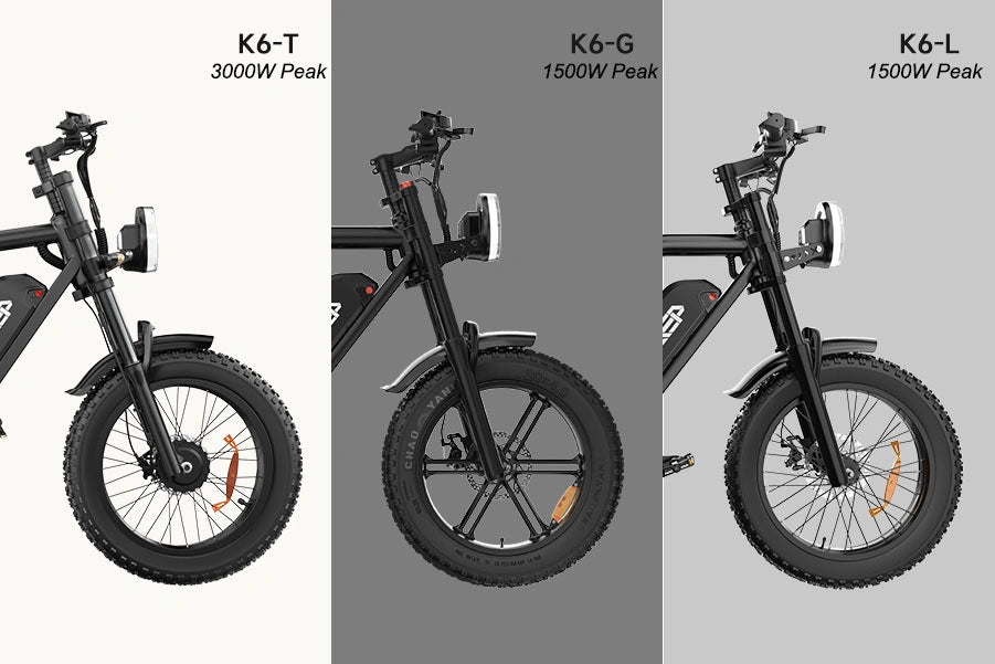 K6 ebikes are designed for off-road use on rugged, unpaved surfaces with their wide and fat tires. These surfaces include dirt trails, gravel roads, grass, sand, and light snow. They can handle rougher terrains better than bikes with narrow road tires, but may still struggle on very technical mountain trails.K6 is also suitable for all-season use.