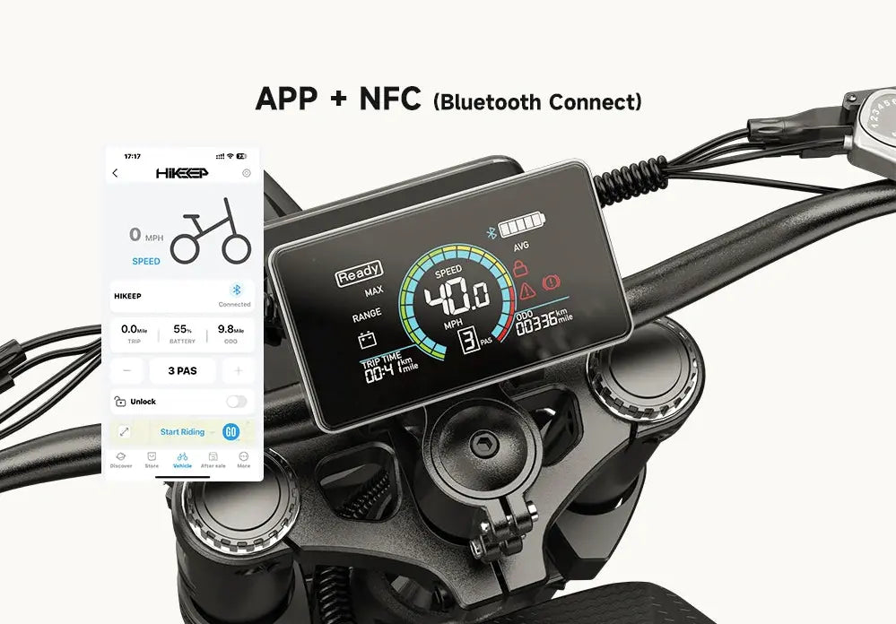 The moment the NFC card touches the sensor, your MA-S instantly awakens, swift as lightning. Alternatively, you can simply tap the switch in your Hikeep app, and then you’re ready to ride your MA-S—no more worrying about forgetting your keys. (Pairing is required for the first use.)