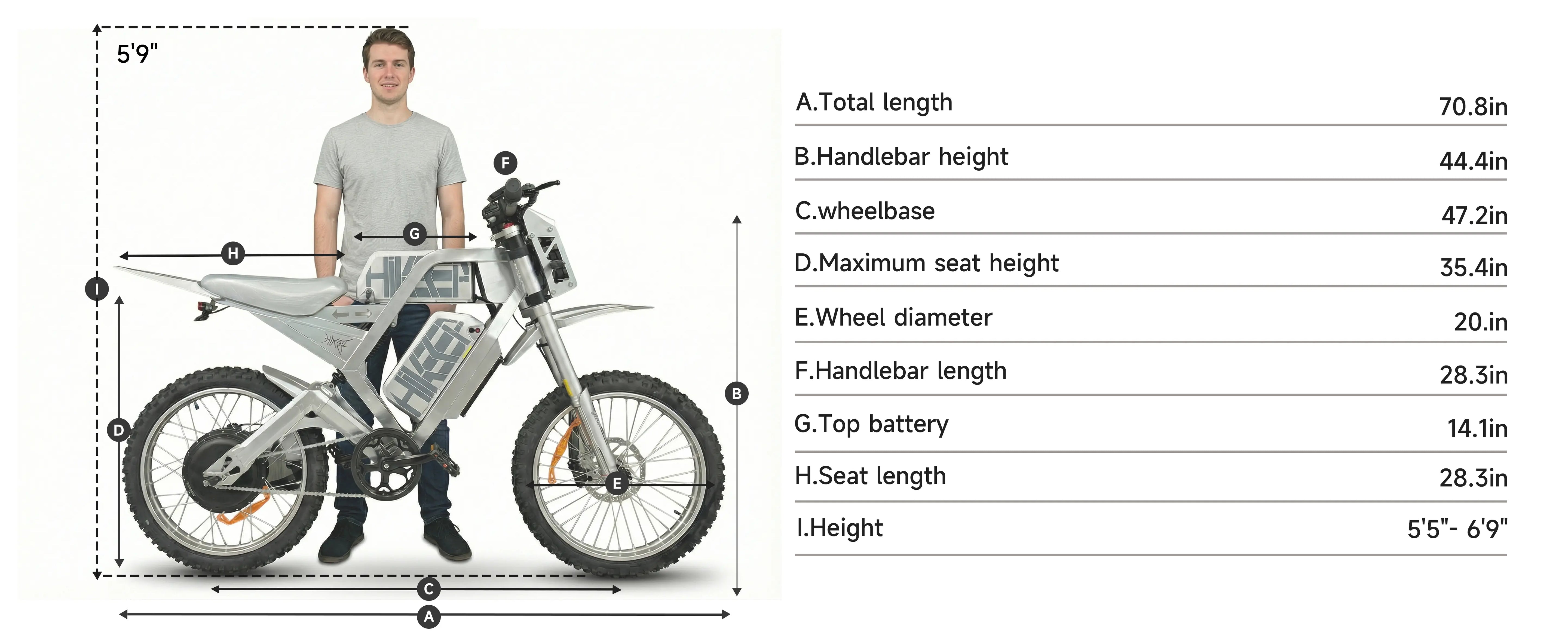 The recommended rider height for Hikeep MX-D is 5'9" ~ 6'9"; The total payload capacity of Hikeep MX-D is 330 lbs (not including the bike weight).