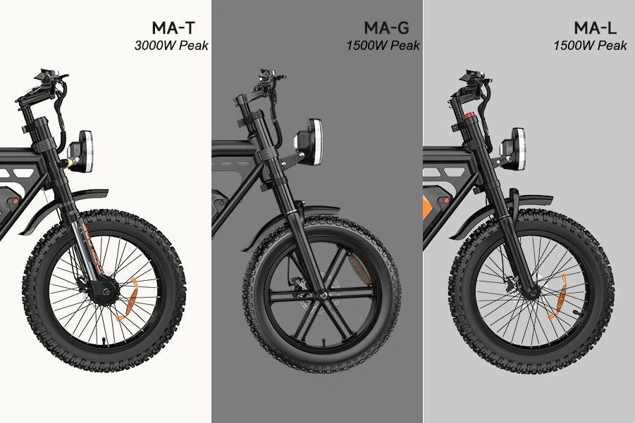 MA ebikes are designed for off-road use on rugged, unpaved surfaces with their wide and fat tires. These surfaces include dirt trails, gravel roads, grass, sand, and light snow. They can handle rougher terrains better than bikes with narrow road tires, but may still struggle on very technical mountain trails.MA is also suitable for all-season use.
