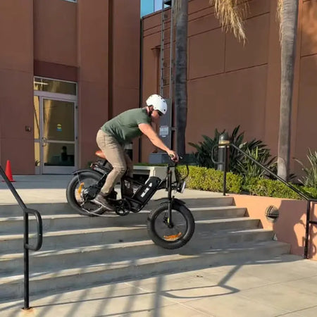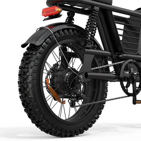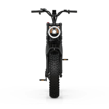 The ME is equipped with an adjustable full suspension system that boosts stability and comfort, even on rough roads and challenging terrains. With its 20"x4" anti-puncture fat tires and a powerful 1000W motor, the S1 easily tackles sand, snow, mud, wet surfaces, gravel, rocky mountain trails, off-road paths, and unpaved roads.