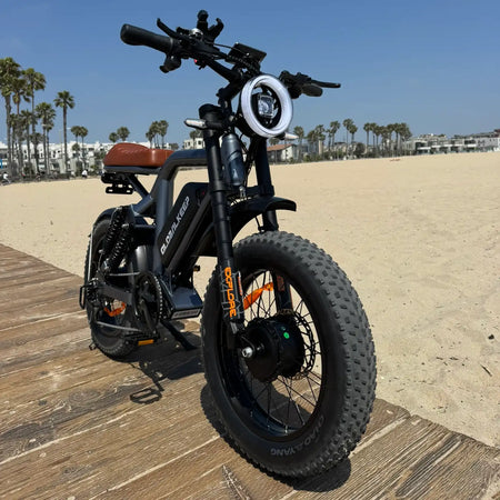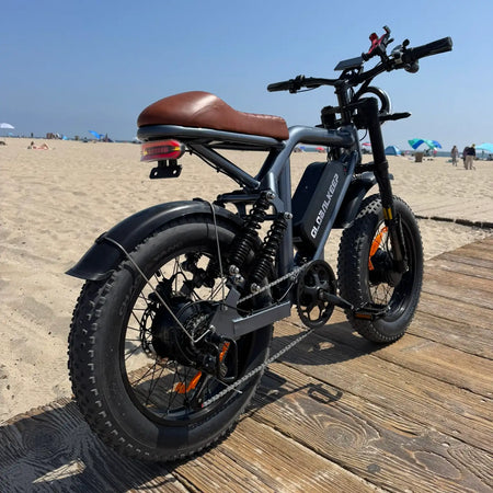 - 20"x4.0" All-Terrain Fat Tires & Mechanical Brakes: Conquer sand, snow, mud, and city streets with 20"x4.0" fat tire electric bike tires and mechanical disc brakes – delivering 1-second stops in all conditions. Combined with the 4-point suspension, this moped e-Bike inspired powerhouse redefines all-terrain electric bike dominance