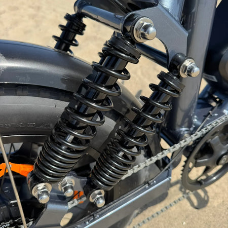 - 4-Point Rear Suspension & Dual Hydraulic Front Shocks: Unmatched stability for adult riders! Our patented 4-point rear suspension and dual hydraulic front shocks absorb impacts from rocky trails, uneven roads, and cobblestones – outperforming standard single-shock ebikes. Built for all-terrain electric bike performance, this system ensures control on any surface